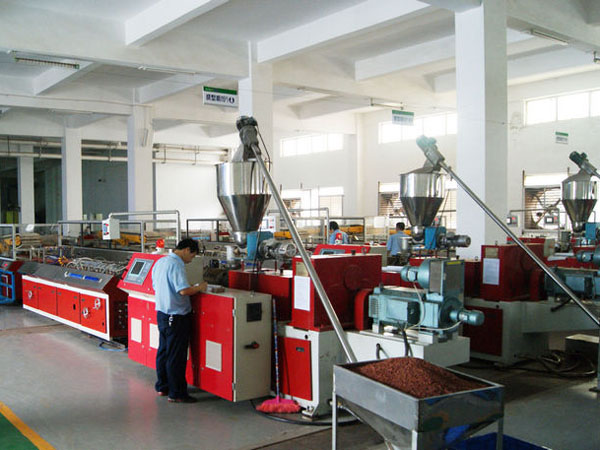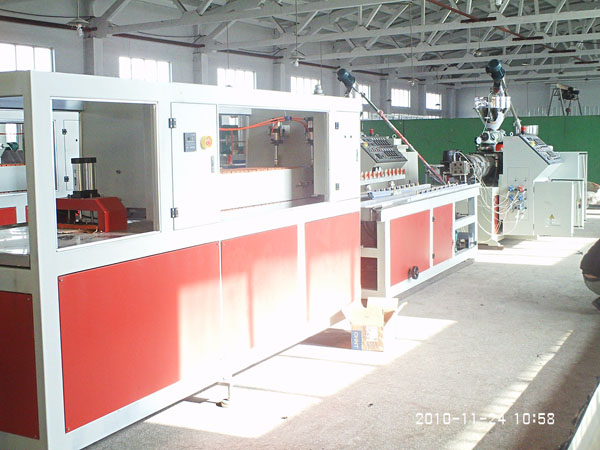 PE,PP,PVC木塑型材設備是我司引進加拿大先進技術(shù),結(jié)合國內(nèi)實際情況研發(fā)的木塑設備,木塑型材生產(chǎn)線采用特殊設計的螺桿,料筒,模具以及我司獨創(chuàng)的木塑工藝及配方,擠出機達到與輔機,模具完美匹配。整條生產(chǎn)線實現(xiàn)了從進料到最后堆料的全自動控制,其中各個機組也可以單獨手動調(diào)整。該生產(chǎn)線具有塑化好,低耗能,高產(chǎn)量性能優(yōu)越,壽命長等優(yōu)點,主要用于生產(chǎn)園林景觀類室外景觀,托盤等戶外木塑型材的擠出