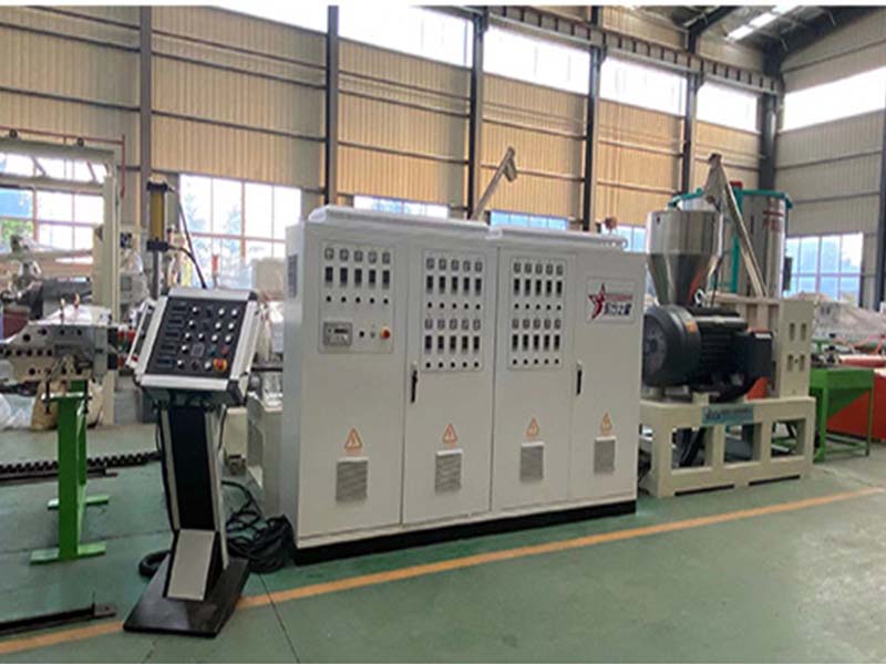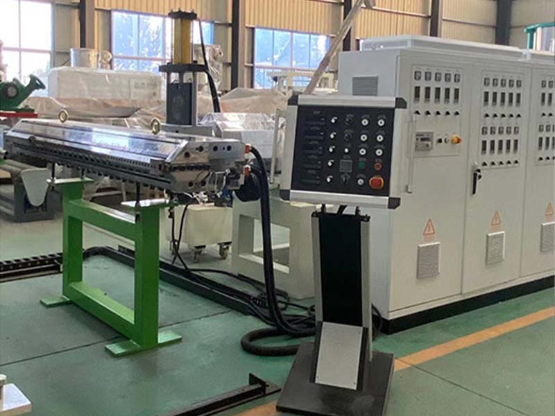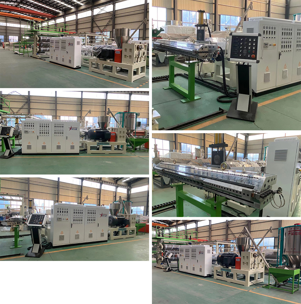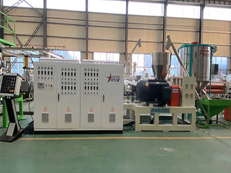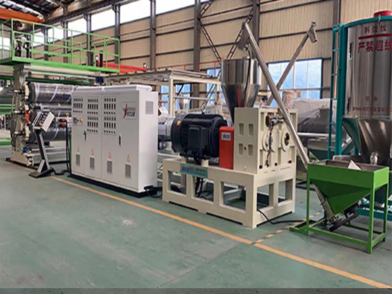該生產(chǎn)線采SJ-150-35比1單螺桿排氣擠出機(jī)、西門子電機(jī)、高扭矩硬齒面減速機(jī)、液壓換網(wǎng)器、T型衣架式可調(diào)模具、立式三輥壓光機(jī)、并可根據(jù)客戶需求配備在線覆皮革裝置、三合一水溫機(jī)、不銹鋼冷卻托架裝并裝有寬幅可調(diào)切邊刀、橡膠輥牽引機(jī)、自動(dòng)定尺剪板機(jī)。生產(chǎn)線采用立體電控柜:日本歐姆龍智能溫控儀、西門子低壓電器、國(guó)內(nèi)外馳名變頻器。所生產(chǎn)的板材經(jīng)二次熱成型后,主要于汽車儀表板、車門內(nèi)裝板、代步車、高爾夫汽車等外殼;還可用于各種拉桿箱、行李箱等。