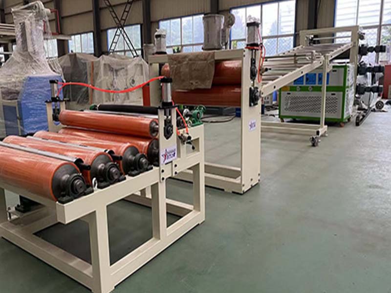 PE化學發(fā)泡片生產(chǎn)線:該設備采用120-30比1單螺桿擠出機、液壓自動換網(wǎng)器、可調(diào)模具、立式三輥壓光機、三合一輥筒恒溫機、不銹鋼冷卻托架裝并裝靜電處理裝置及有寬幅可調(diào)的合金切邊刀、橡膠輥牽引機、雙工位氣漲軸收卷機。全線采用:日本歐姆龍智能溫控儀、施耐德低壓電器、國內(nèi)馳名品牌變頻調(diào)速器。